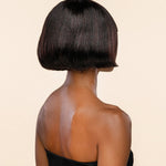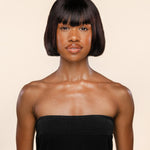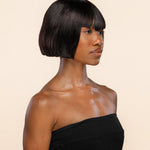 Transform your style effortlessly with CiCi, a sleek 8-inch wig made from premium human hair. The sharp V-cut bangs bring an edgy, modern touch, while the rich natural black hue offers timeless elegance. With 150% density, this wig provides full-bodied volume and natural movement, giving you a polished, refined look that's easy to achieve.