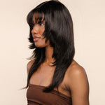 Discover effortless elegance with Trish, a sleek 16-inch wig crafted from premium human hair. The shaggy cut introduces a touch of texture and dimension, while the natural black hue offers a timeless and sophisticated look. With 200% density for exceptional fullness, this wig delivers movement and volume, perfect for creating a bold yet polished style. The T-style lace closure ensures a seamless blend with your natural hairline, enhancing your confidence and styling versatility.